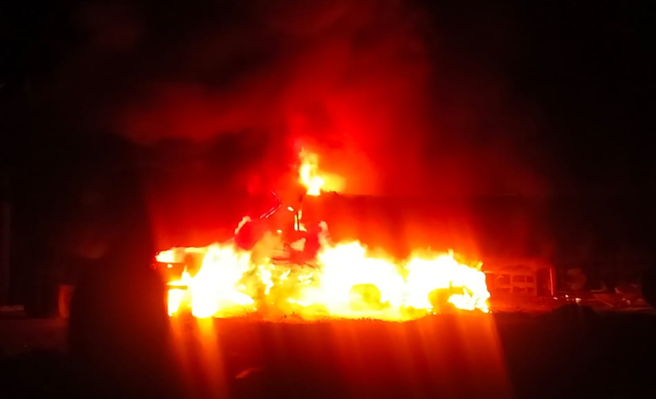 दो वाहनों के बीच भीषण टक्कर, वाहनों में लगी आग, चालक की जलकर मौत होने की आशंका