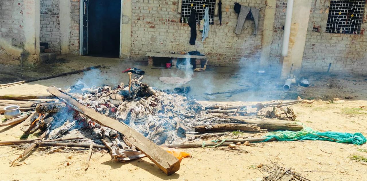 परिजनों ने मृतिका प्रीति की शव का ससुराल में उनके ही घर के आंगन में किया अंतिम संस्कार